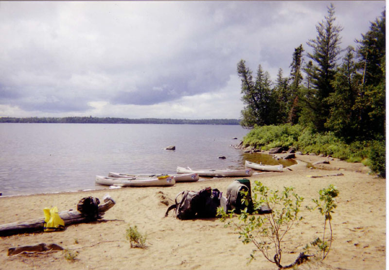 Our first camp of the canoe trip had a slightly rocky beach, but it