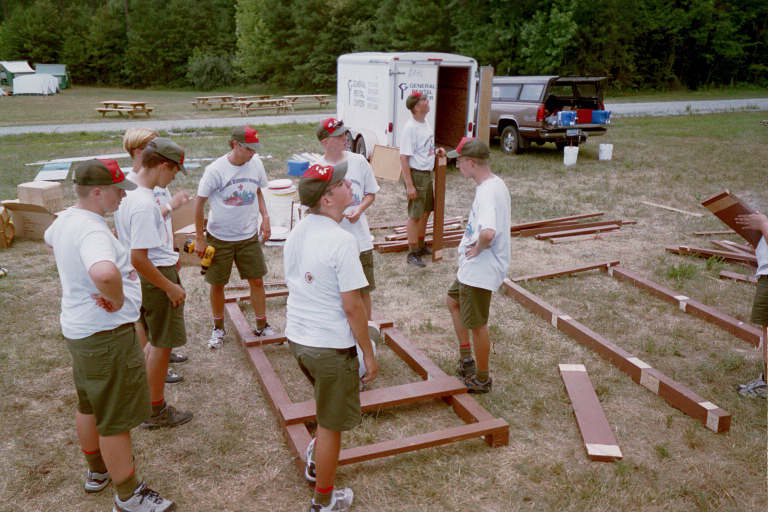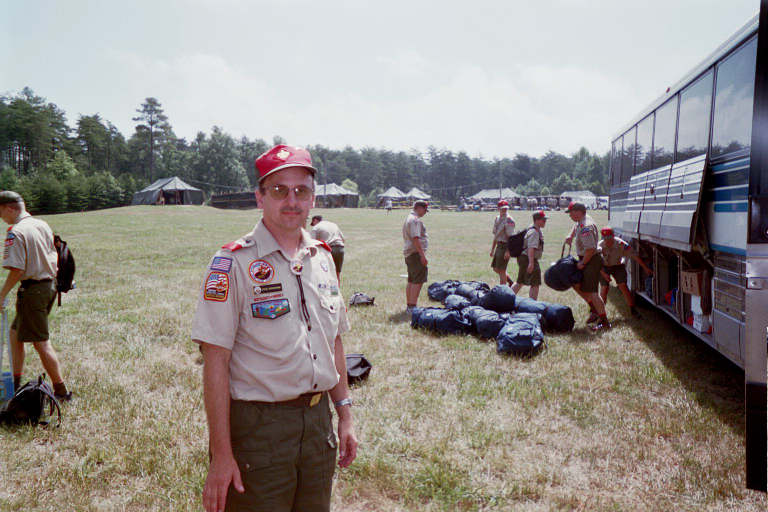 Scoutmaster of Troop 1417, Steve B. kept an eye on things as camp was prepared.