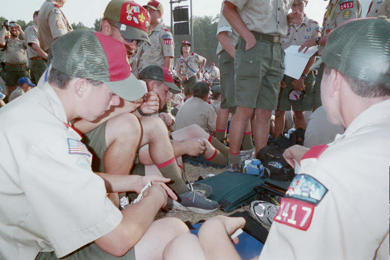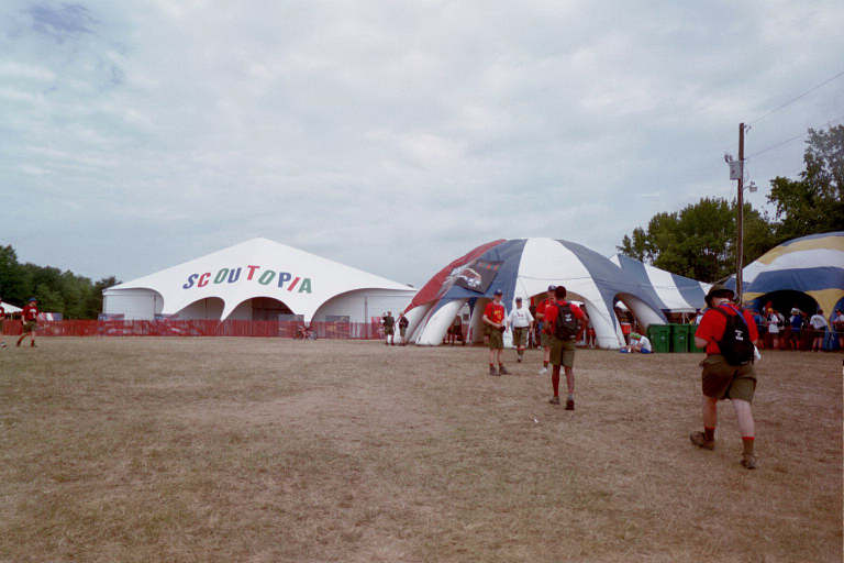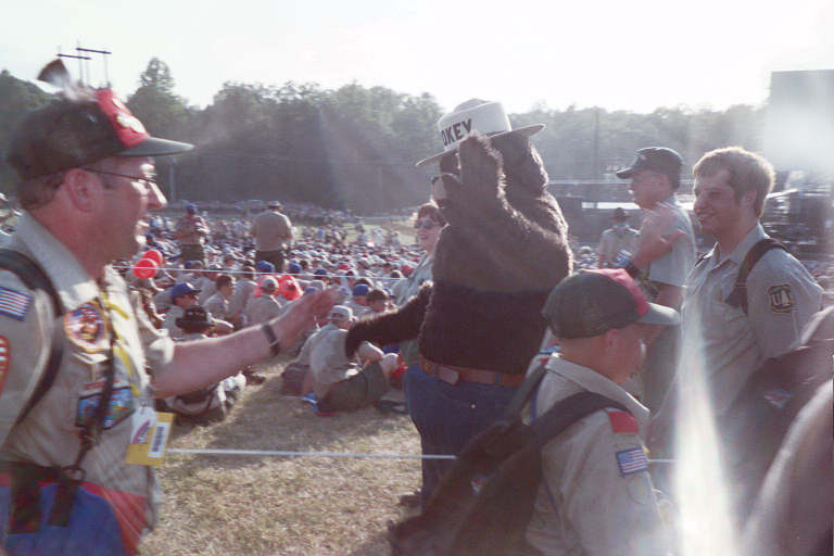 The 2001 National Jamboree has begun! There were plenty of activities and demonstrations for Scouts and leaders to participate in during their stay. From archery, wall climbing, and pioneering to special events like Scoutopia, Brown Sea Island, and military displays, there was so much to do that I doubt any one got to see and do everything.