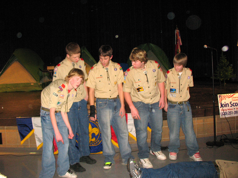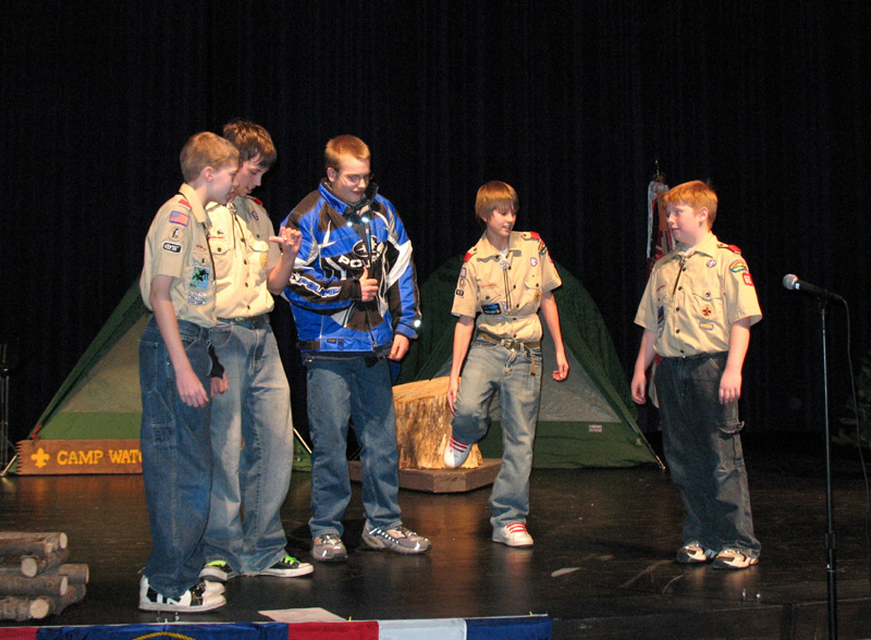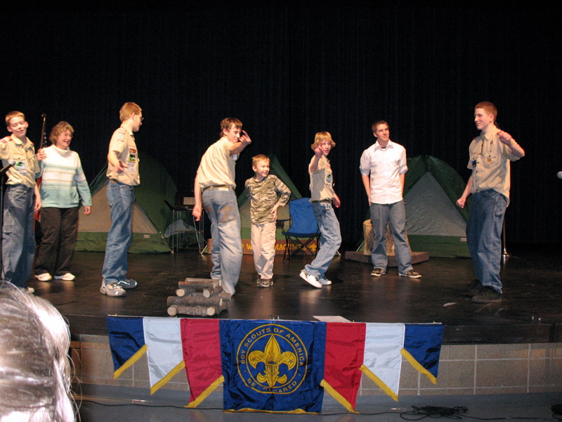 This is the twelfth show the troop has held. The show is based on songs and skits seen at some of the campfire programs at summer camps and camporees. In addition to well know campfire songs and skits the troop has developed a few original bits that also have become a part of the show. Some of the bits even included audience members who were brought on stage to have a little fun.