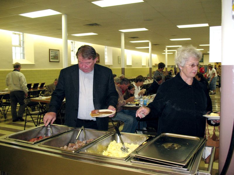 The Boy Scouts eat before the first customers arrive.