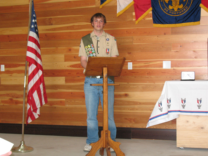 Mike takes the Eagle Scout Pledge before receiving his award.