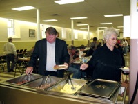 Preparing for for the Saturday pot luck supper.