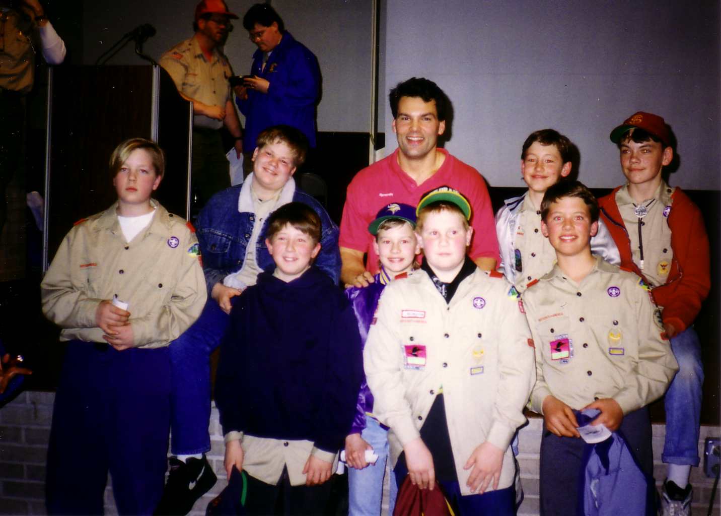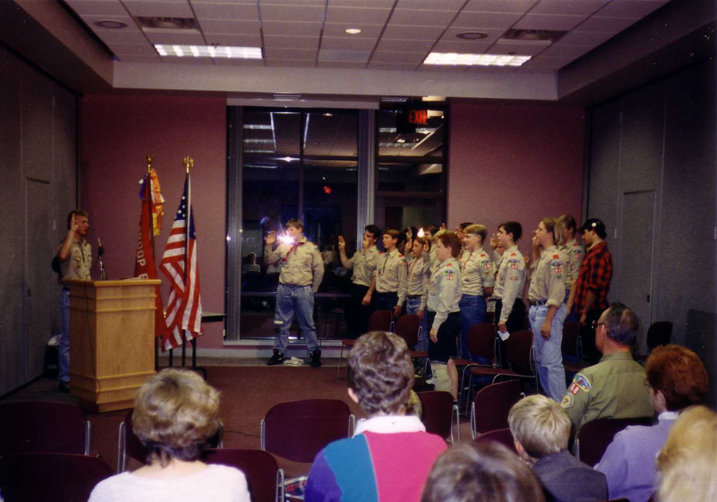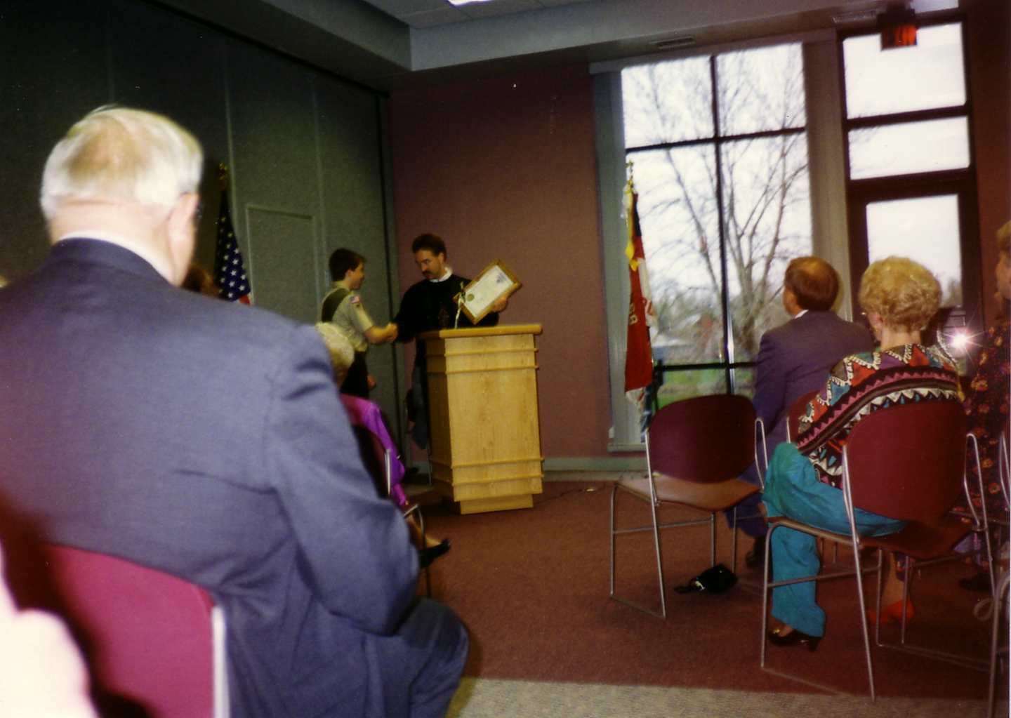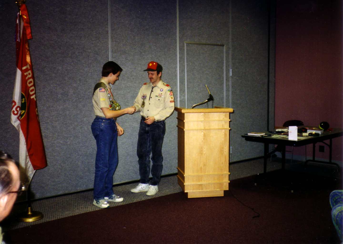 ![]() Tom receives his Eagle Award as his parents stand beside him. |