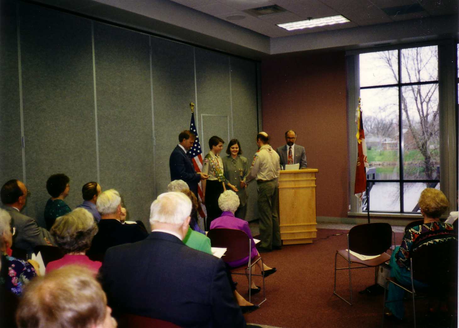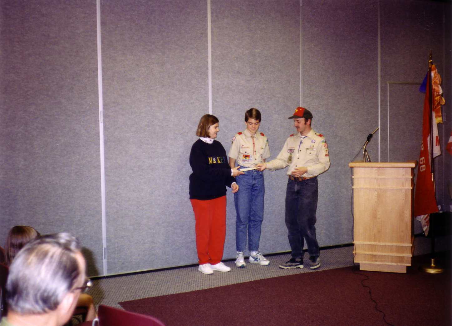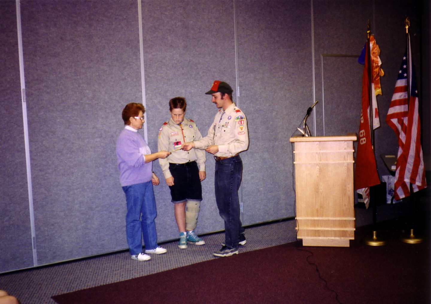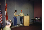 ![]() Fran accepted a plaque from the troop for the Lions Club. |