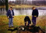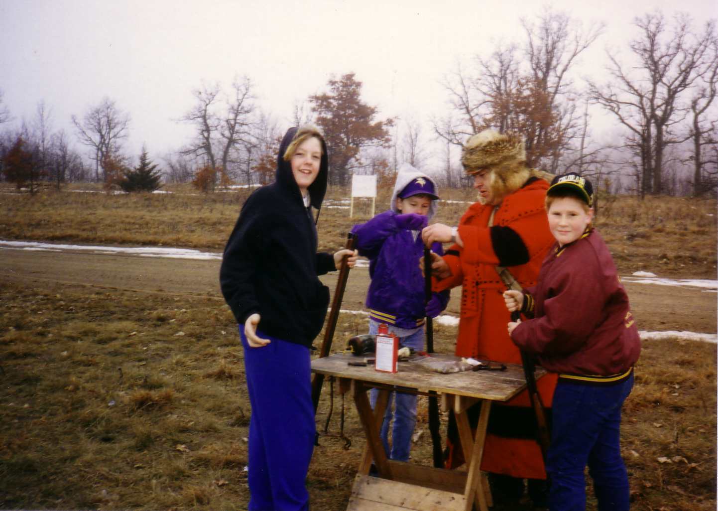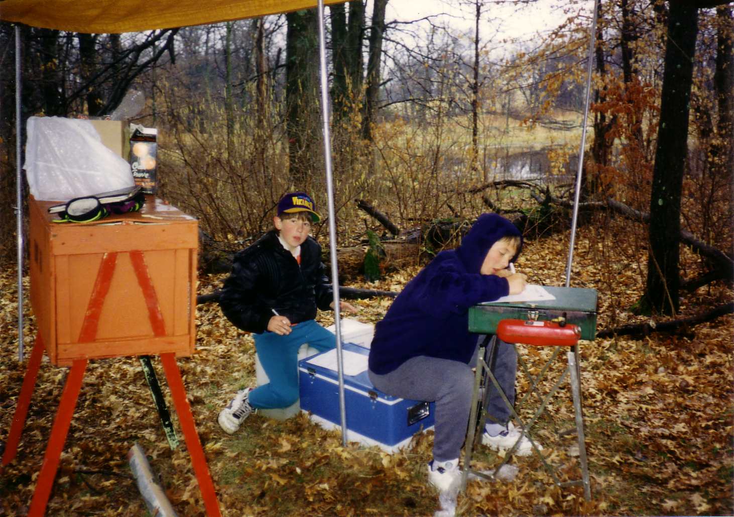 ![]() Ross watches as Waylon and Chris build a fire during a competition. |