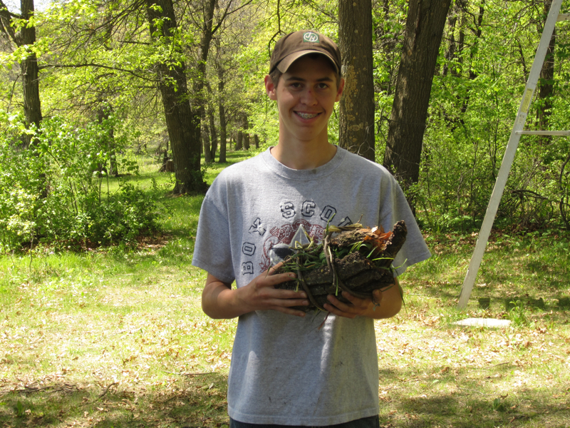 The shoreline of the Sauk River, which passes through Melrose, was getting very trashy so the troop took time during one of their troop meetings to pickup some of the garbage near the city hall, a parking lot, the dam, and the city park.