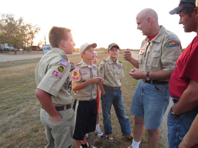 The old scoutmaster and new scoutmaster.