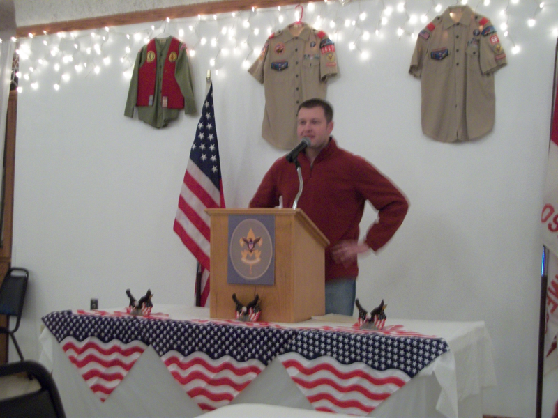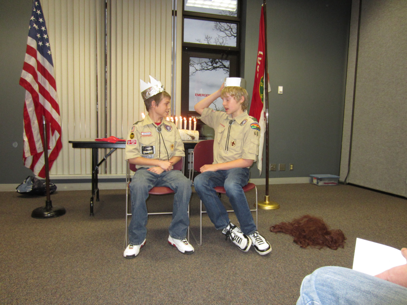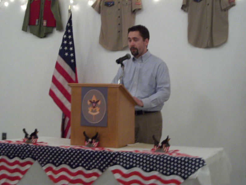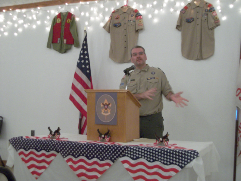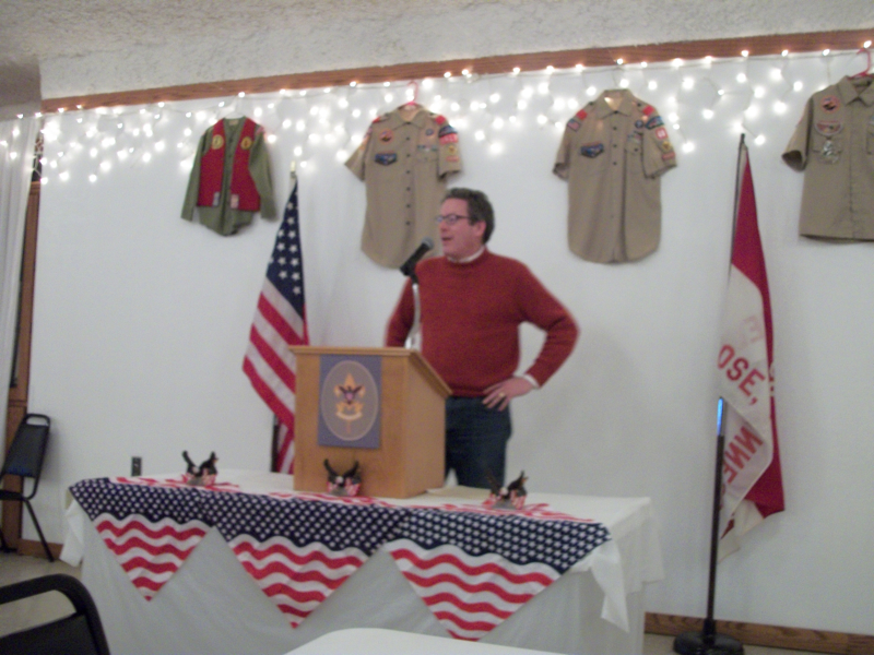 The final court of honor of the year was held at the city hall meeting rooms once again. The ceremony was followed by the troop's annual troop auction in which the Boy Scouts use the Troop Bucks earned during the year to bid on various prizes. This was also the court of honor that the old scoutmaster helped the new scoutmaster with the ceremony.