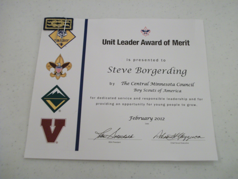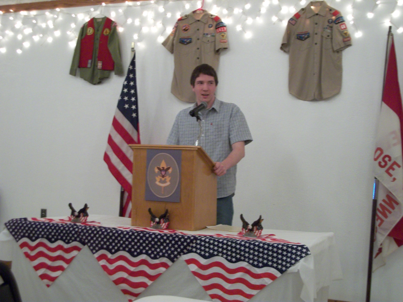 Darren Borgerding's Eagle Court of Honor was held in Sauk Centre on Sunday, April 1st. A good crowd was in attendance. Both of Darren's scoutmasters were on hand to help with the ceremony. Of course, like many Eagle ceremonies, things did get emotional a couple times.