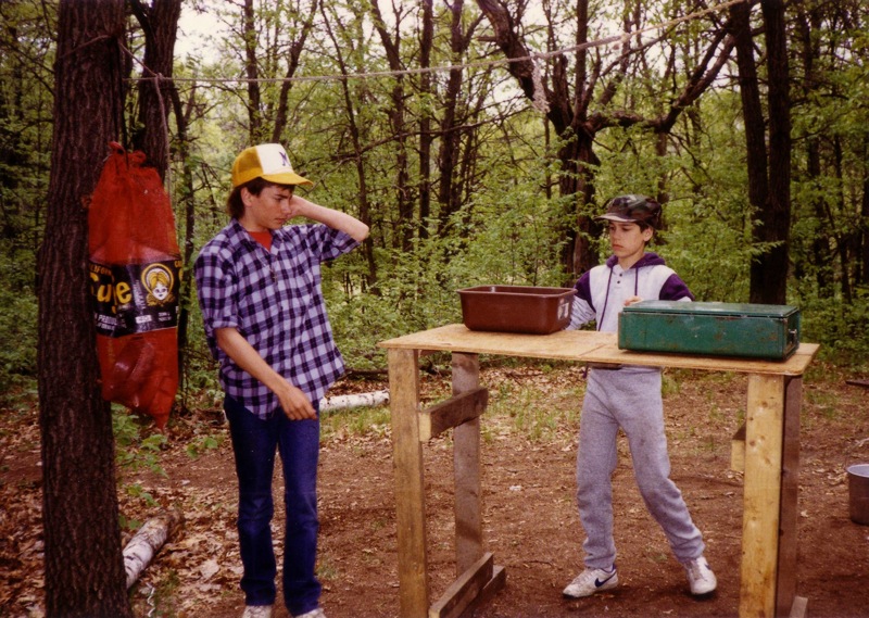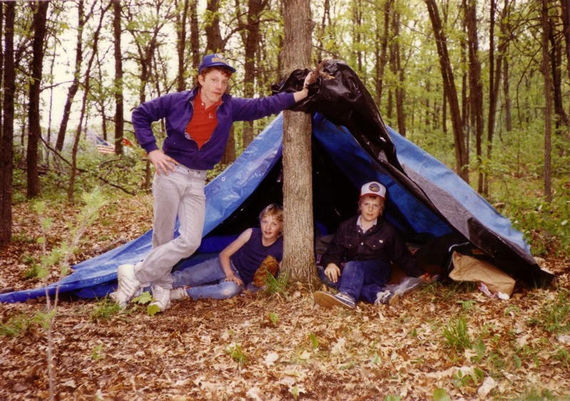 Primitive camping was the theme for this year's outing at Camp Watchamagumee. The guys made their own shelters and cooked over open fires.