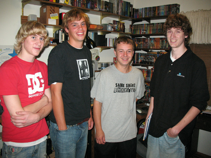 Josh, Mike, Chris, and Sergio posed for this picture one evening after playing a game.