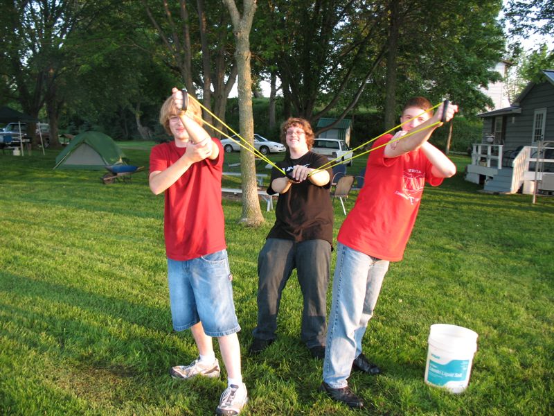 ![]() The Boy Scouts have arrived. Time to set up camp. | ![]() Just relaxing around the campfire. | ![]() Ready. Set. Fire the water balloon slingshot! | ![]() Be careful of where you throw your frisbee during disc golf. |