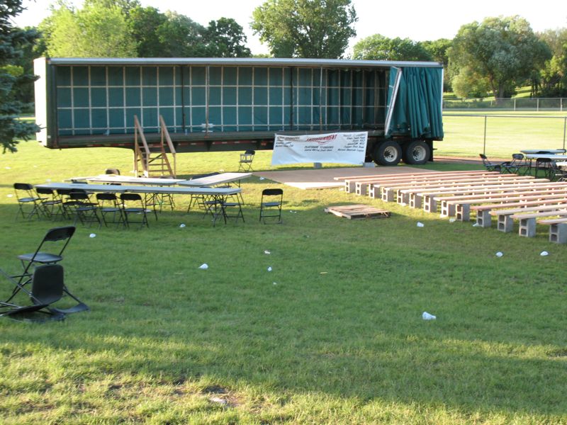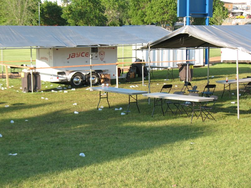 ![]() One view of the litter found in the park... | ![]() after Saturday's celebration. | ![]() The Scouts also took down the tables and benches. | ![]() Looking much better now. |