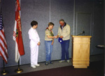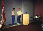 ![]() Fran accepted a plaque from the troop for the Lions Club. |