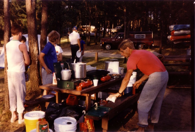 Primitive camping was the theme for this year's outing at Camp Watchamagumee. The guys made their own shelters and cooked over open fires.