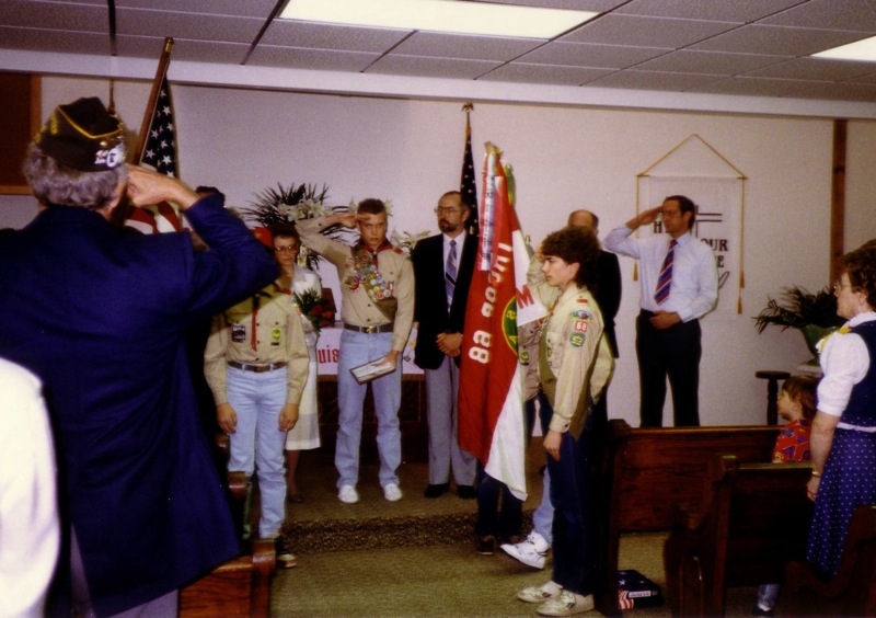 Jeff's Eagle court of honor was held at St. Paul's Lutheran Church. There were a lot of people in attendance.